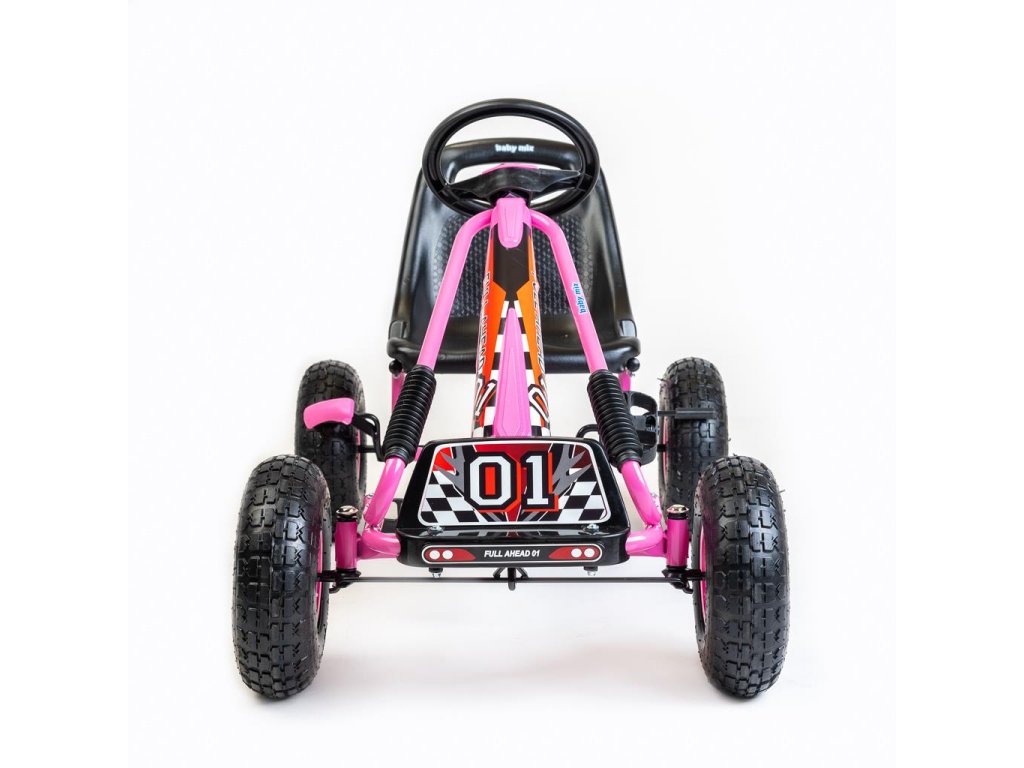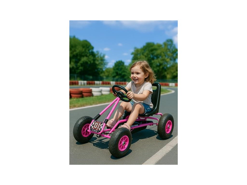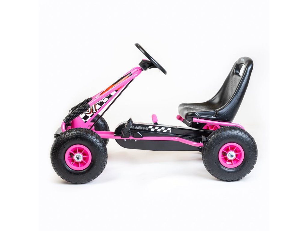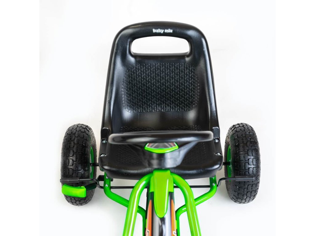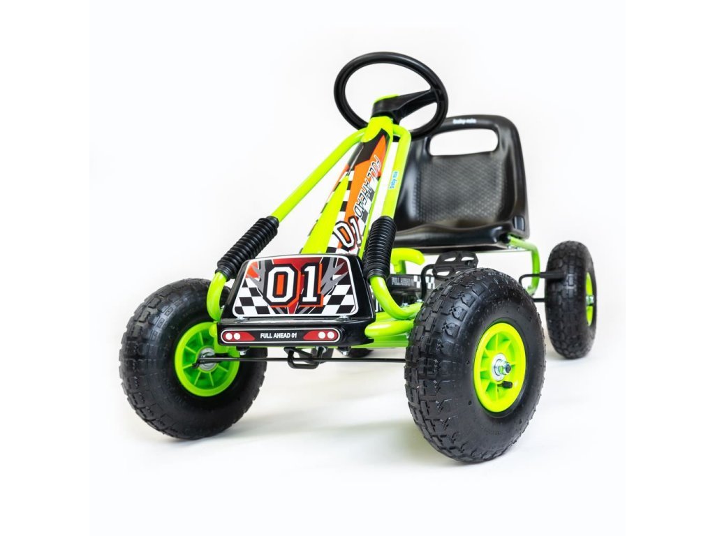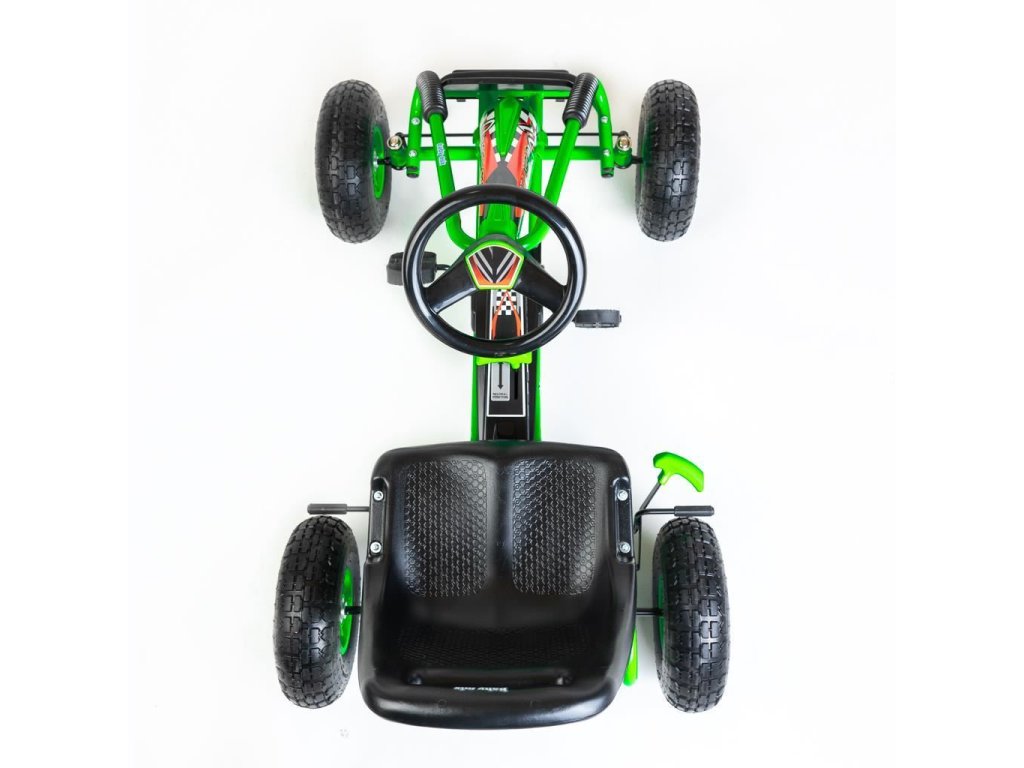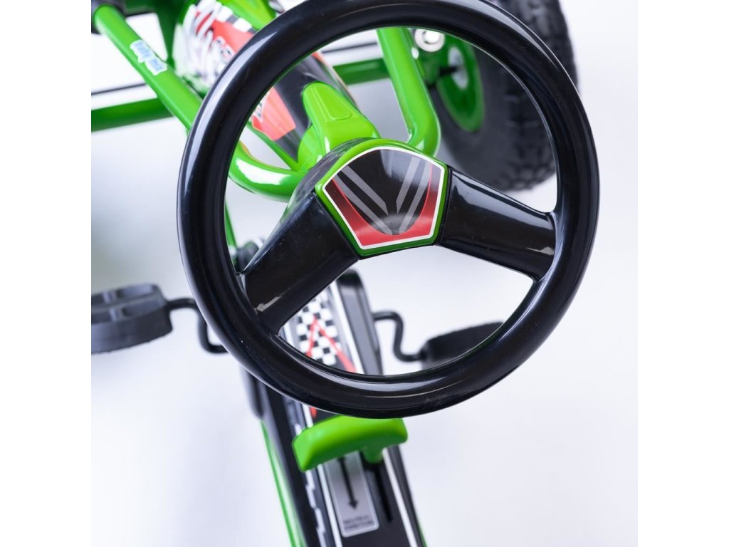Velké nafukovací pneumatiky zajistí komfort a pohodlí při jízdě na jakémkoli povrchu. Motokára má zabudovaný řetězový pohon s možností odpojení pohonu - funkce volnoběžky a ruční brzdu na zadní nápravě.