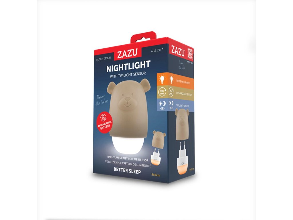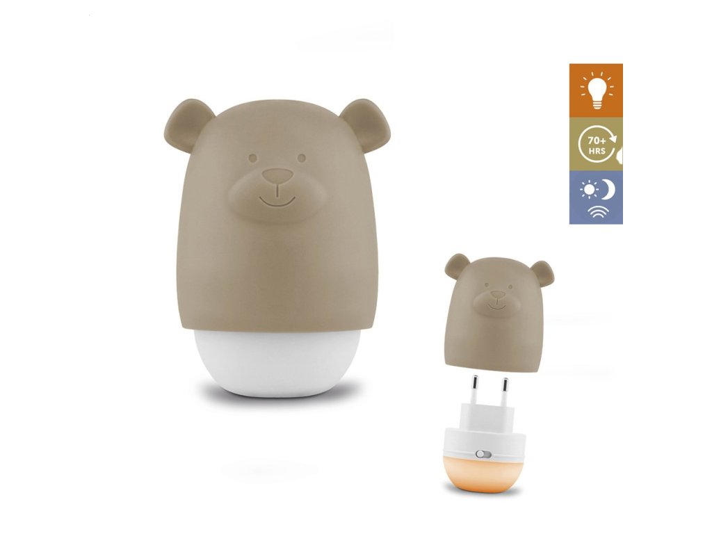 Zazu Medvídek BENNY hnědošedý - noční světlo se senzorem soumraku