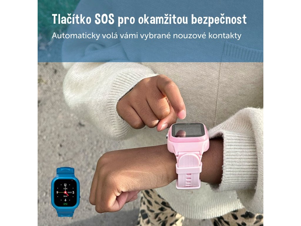 Rodiče mohou do hodinek uložit pouze důvěryhodné kontakty, čímž je zajištěna bezpečná komunikace bez rušivých nebo neznámých volání. Pro krizové situace jsou hodinky vybaveny SOS funkcí – dítě může jediným stiskem tlačítka okamžitě kontaktovat přednastavená nouzová čísla.