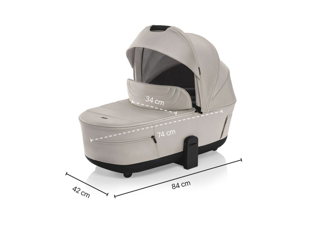Korba Move Cross 5 XL se nasazuje přímo na podvozek bez adaptérů, váží jen 3,9 kg a je vybavená měkkou matrací i prodloužitelnou stříškou. Díky ventilačnímu systému je vhodná do každého ročního období.