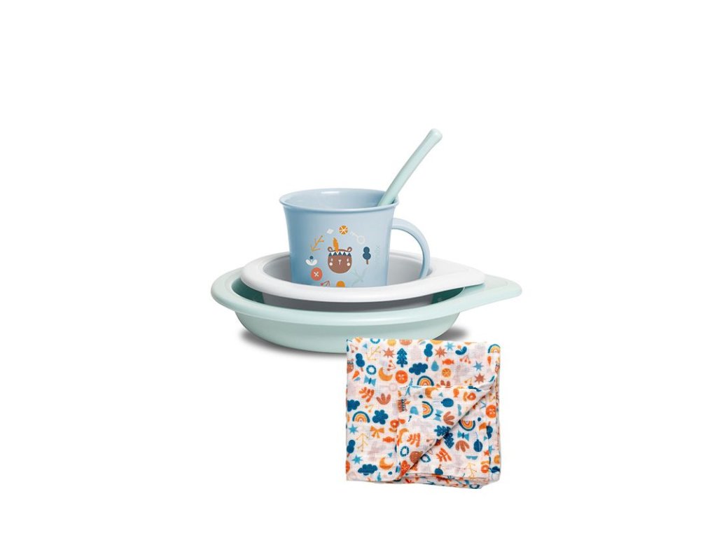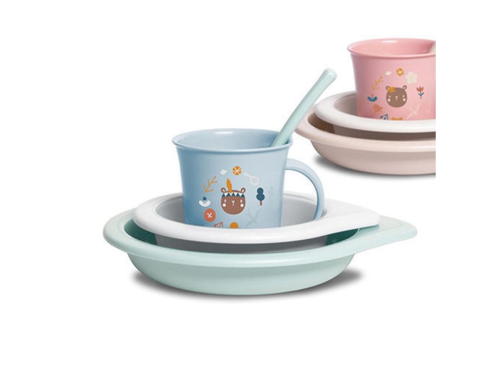 Naučit se jíst samostatně je zábava - čas oběda nebo svačinky se s našimi potřebami ke krmení promění v příjemnou a zábavnou zkušenost. Jednotlivé komponenty jsou vyrobeny z polypropylenu, plastu, který neobsahuje BPA. Jsou praktické, lehké (díky lehkosti je může dítě pohodlně používat samo) a nerozbitné. Jejich tvary a zaoblené hrany dodávají nutnou bezpečnost, abychom je bez obav nechali jíst samostatně. Obsahuje praktickou protiskluzovou podložku, aby talířek neklouzal.