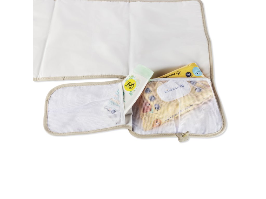 Kompaktní přebalovací podložka se třemi kapsami, která usnadní přebalování na cestách. Snadno se čistí, nezabere místo a vše potřebné máte vždy při ruce.