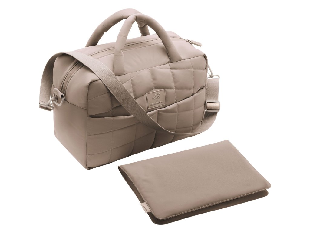 Součástí tašky je také praktická přebalovací podložka. Tašku můžete pohodlně připnout na kočárek nebo nosit přes rameno – ideální na procházky, výlety i společné aktivity.