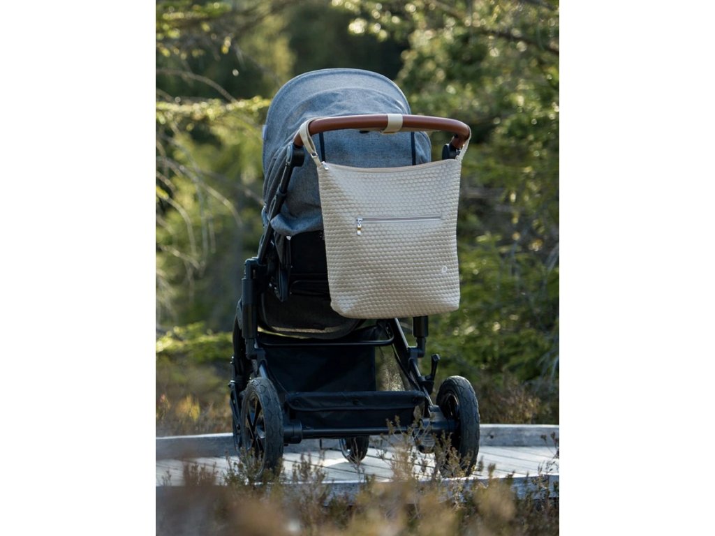 - je možné připnout ke kočárku, na tašce jsou všitá poutka - lze snadno připevnit karabinky (nejsou součástí)