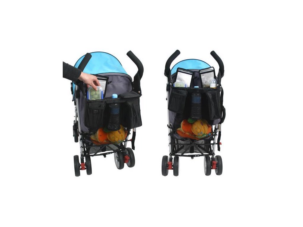 Nový organizér je skvělý doplněk a ideální pomocník pro všechna roční období. Má dvě velké izolované kapsy pro udržení jídla či pití v chladu, nebo naopak v teple. Součástí je i centrální síťovaná kapsa pro nápoje a malá síťovaná kapsa na drobnosti, jako jsou klíče nebo mobilní telefon. Velká síťovaná kapsa je ideální pro uložení oblíbených hraček, deky nebo jiných potřeb. Organizér je vybaven dvěmi mrazícími gelovými sáčky, které lze snado uložit do izolovaných kapes.