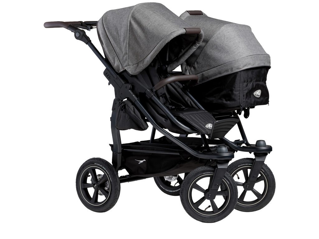 Konstrukce kočárku duo2 je větší, lehčí, odpruženější, lépe ovladatelná. Snadno na ni nacvaknete nový model hluboké korby duo2 combi, nebo sportovní sezení stroller seats duo2. Lze mít separátně dvě korby, nebo dva sedáky pro dvojčátka, anebo kombinaci korba a sedák pro sourozence.