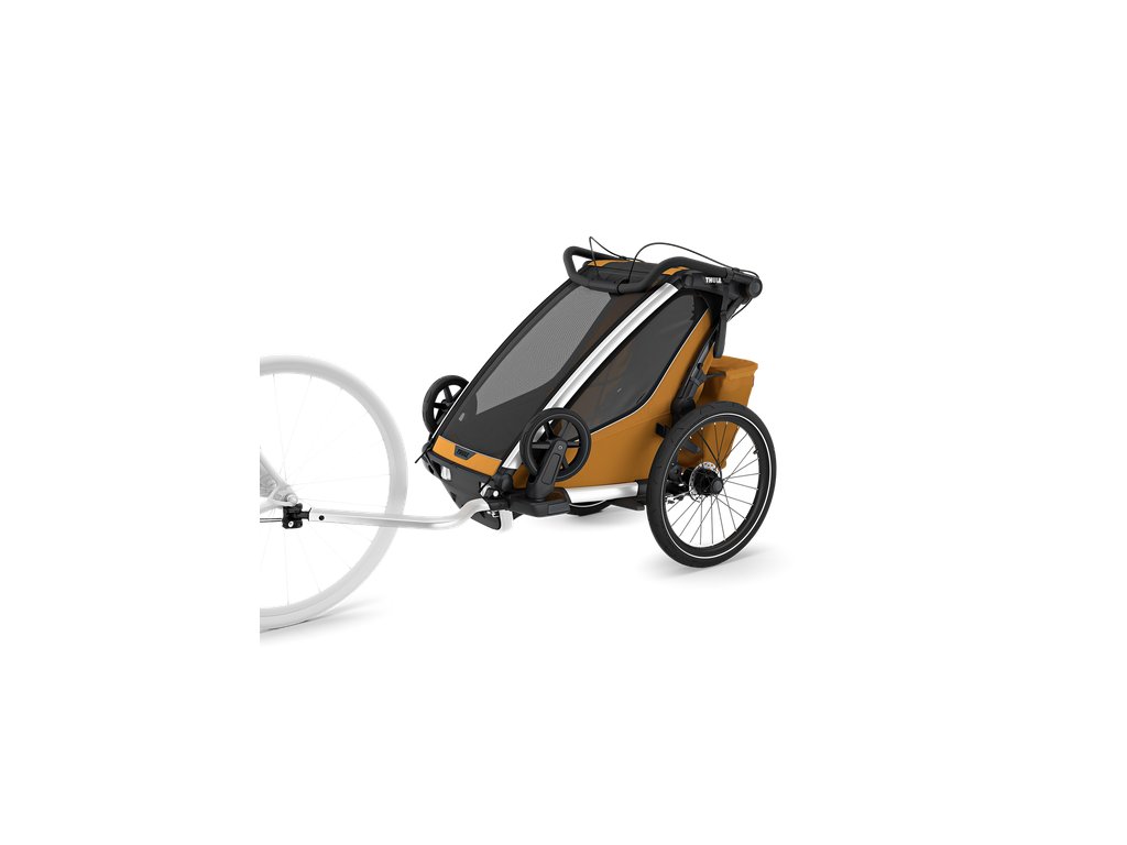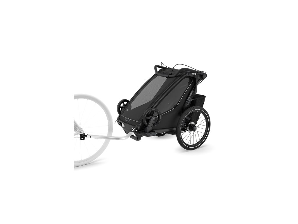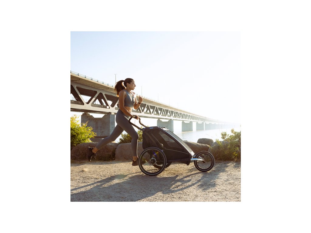 Vozík Thule Chariot Sport 2 je vyroben tak, aby trénink byl bezpečný, snadný a zábavný. Umožňuje vám snadno přecházet mezi jízdou na kole, chůzí a během. Rychlé otočení kola jednou rukou o 180 stupňů promění vozík za kolo během několika sekund v kočárek. Přepracované závěsné rameno je navíc vybaveno bezpečným nacvakávacím držákem, což zjednodušuje připevnění a přidává další úroveň ochrany prostřednictvím integrovaného zámku. Díky flexibilním možnostem nastavení sedaček pro jedno nebo dvě děti vozík Thule Chariot Sport uspokojí individuální potřeby každé rodiny.