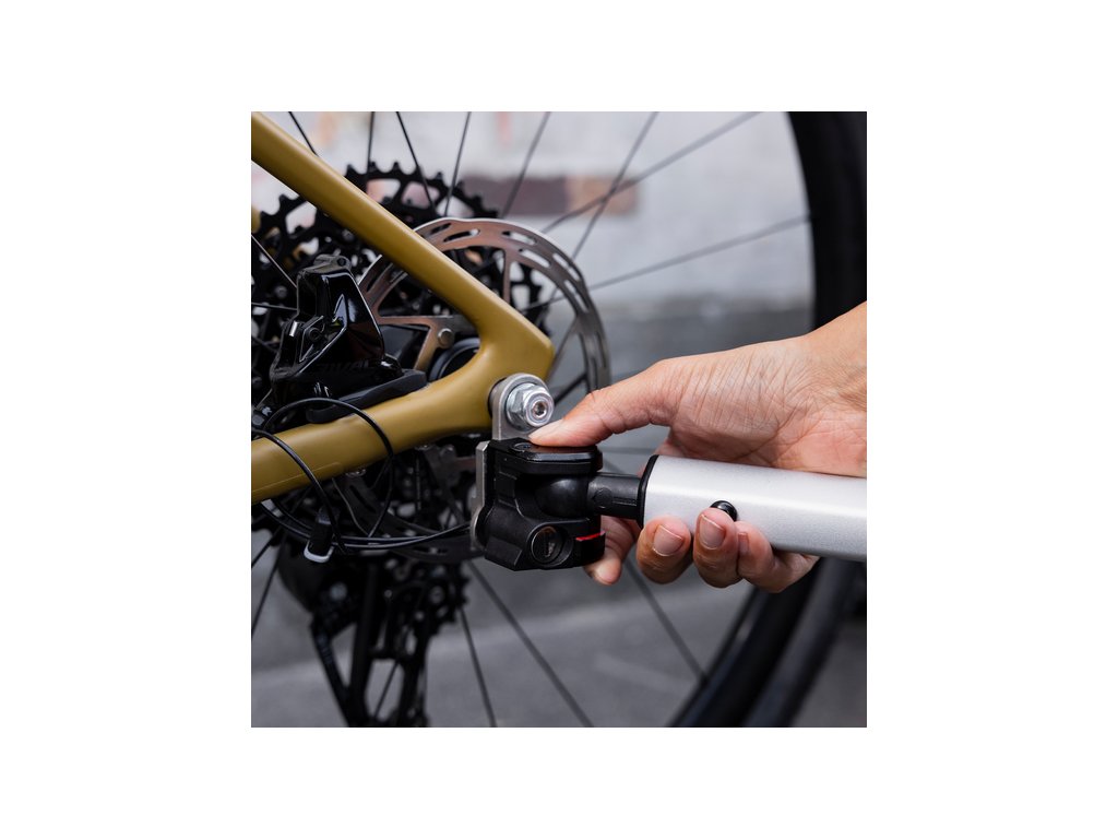 Nové závěsné rameno umožňuje uživateli snadno a bezpečně připojit a odpojit vozík od kola pouze jednou rukou