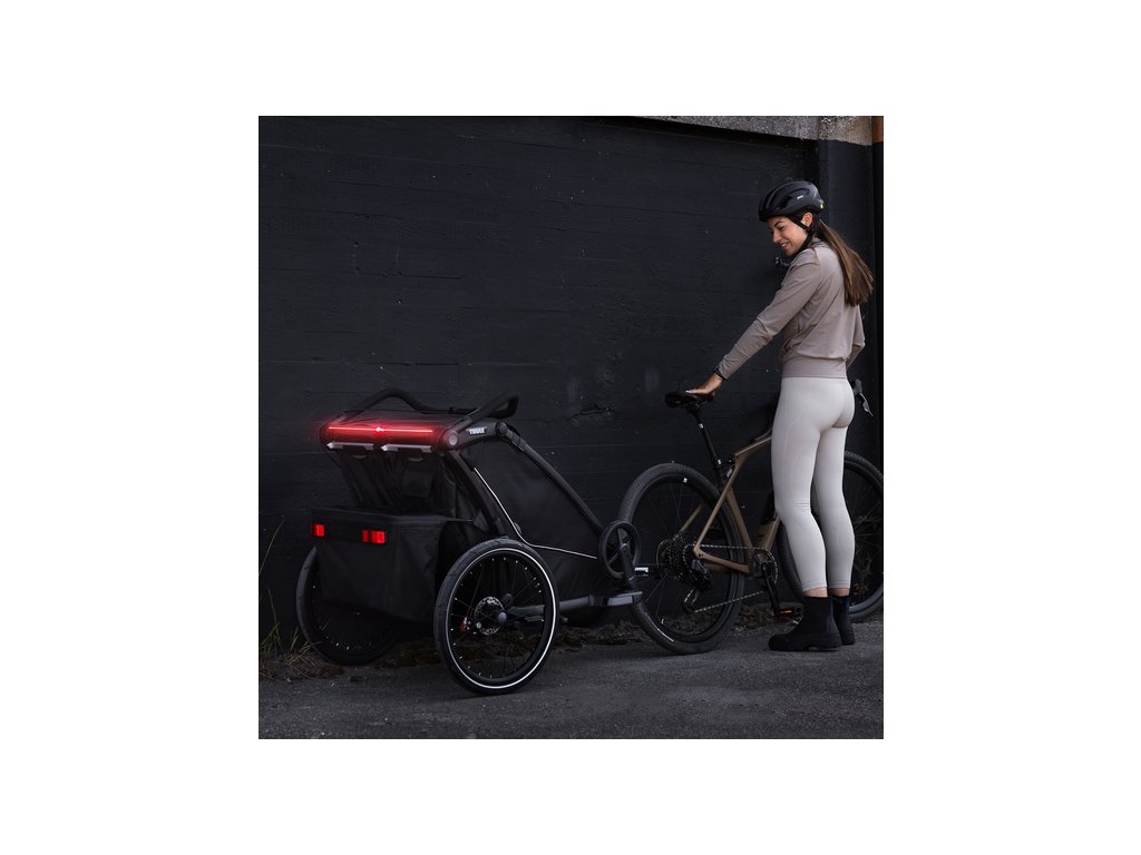 Zvýšená bezpečnost je v jádru vozíku Thule Chariot Sport 2. Je vybaven integrovaným LED osvětlením s vysokou viditelností, které je napájeno z powerbanky Thule 10k (prodává se samostatně), díky čemuž jste za všech podmínek dobře viditelní. Silné kotoučové brzdy umožňují okamžité zastavení při běhu, zatímco jednoduchá a bezpečná instalace tažného ramene zaručuje správné připojení pokaždé. Všechny cyklovozíky Thule jsou testovány na náraz v našich špičkových testovacích zařízeních, což nám umožňuje zajistit, že naše vozíky překračují všechny bezpečnostní normy.