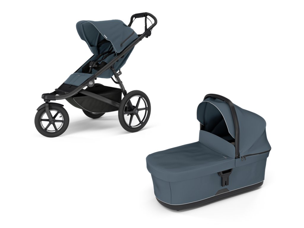 - s Thule korbou nebo adaptérem na dětskou autosedačku (prodává se samostatně) lze používat již od narození