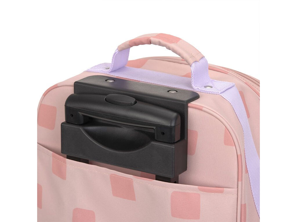 teleskopická rukojeť pro převážení kufru je nastavitelná pomocí tlačítka do 3 výškových úrovní
