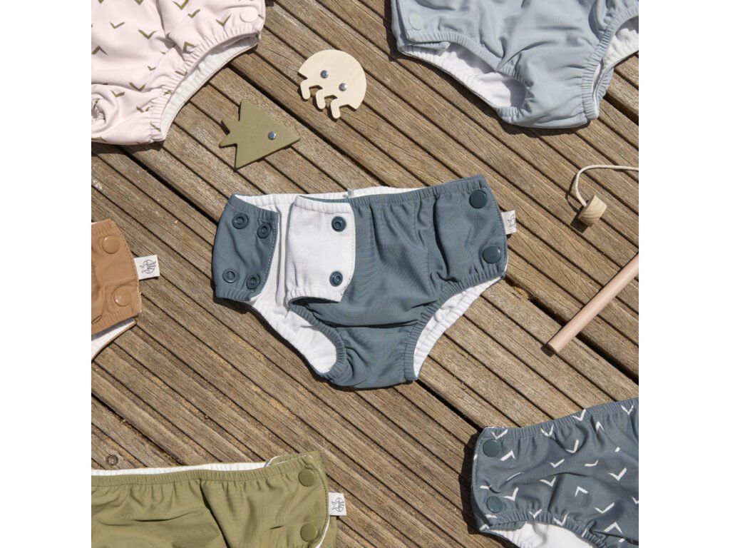 Plavecká plenka s patentkami pro opakované použití je krásnou alternativou jednorázových koupacích plen. Díky praktickým drukům na bocích se plenka snadno nasazuje a sundává a roste flexibilně s dítětem. Lze použít rovněž jako „kalhotky" na jednorázové či látkové pleny.