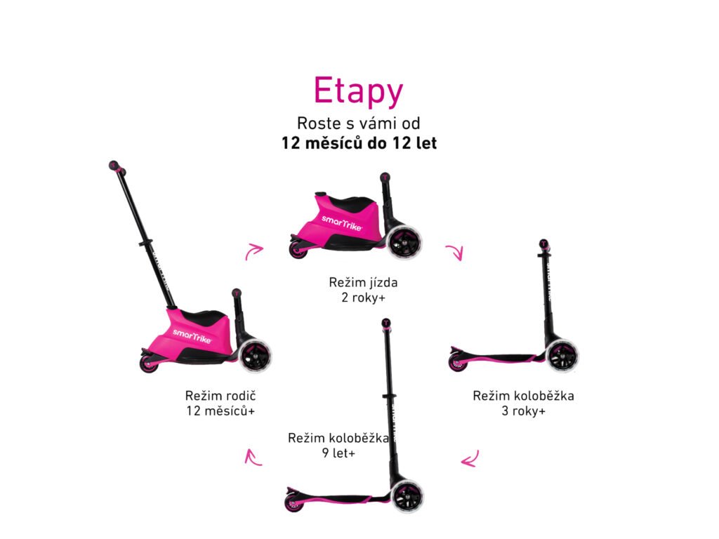 unikátní multifunkční koloběžka určená dětem od 12 měsíců do 12 let