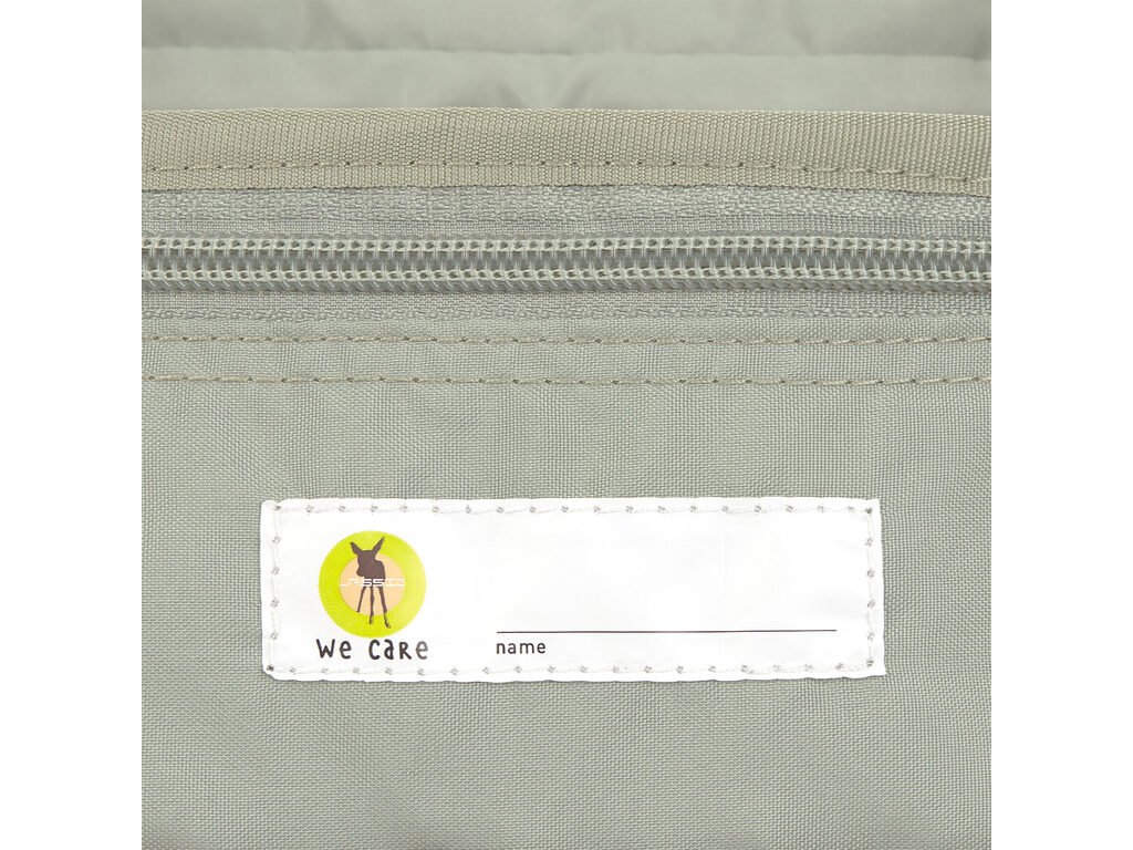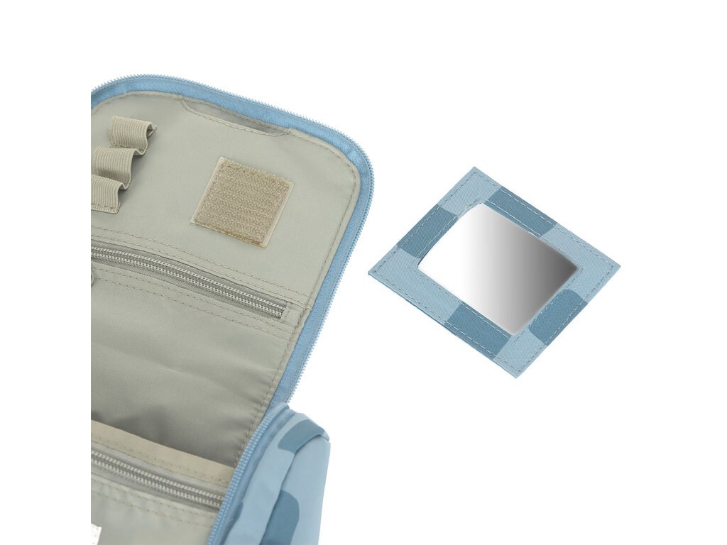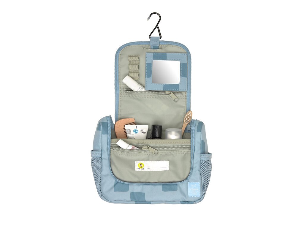 obrázek na přední straně washbagu, který je možné přichytit pomocí patentky
