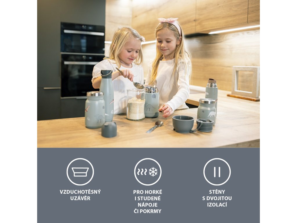 teplou kaši nebo polévku kdekoliv. Víčko termosky lze použít jako hrníček či